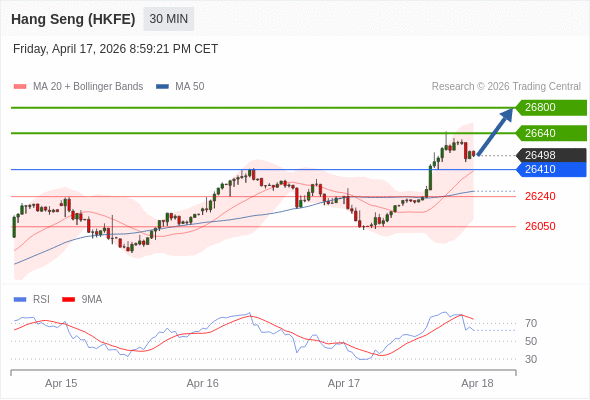 在 26410 之上,看涨,目标价位为 26640 ,然后为 26800 。