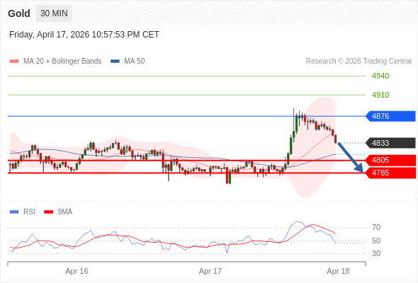 在 4876 之下,看跌,目标价位为 4805 ,然后为 4785 。