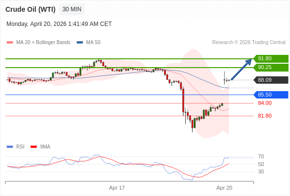 在 85.50 之上,看涨,目标价位为 90.25 ,然后为 91.80 。
