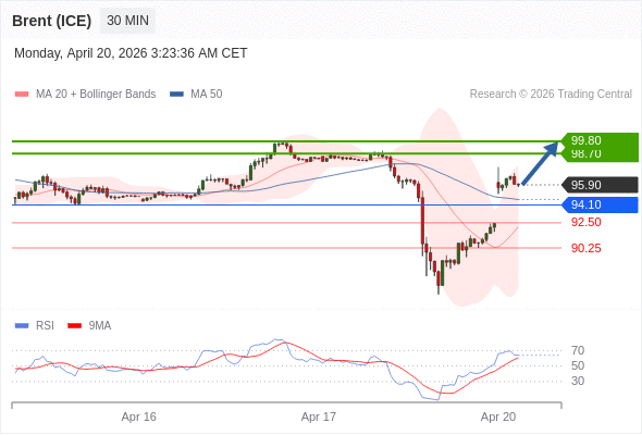 在 94.10 之上,看涨,目标价位为 98.70 ,然后为 99.80 。