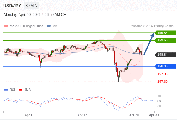 在 158.30 之上,看涨,目标价位为 159.50 ,然后为 159.85 。