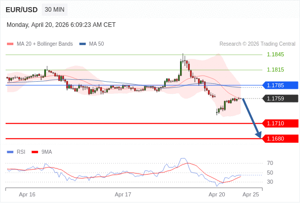 在 1.1785 之下,看跌,目标价位为 1.1710 ,然后为 1.1680 。