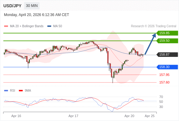 在 158.30 之上,看涨,目标价位为 159.50 ,然后为 159.85 。