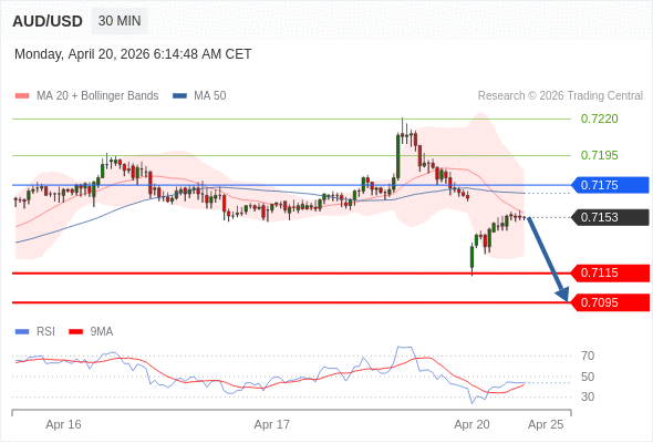 在 0.7175 之下,看跌,目标价位为 0.7115 ,然后为 0.7095 。
