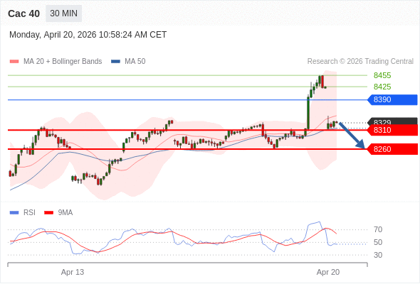 Cac 40 当日内: 存在压力。