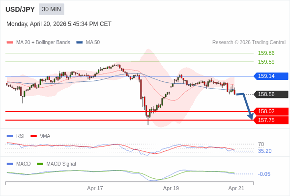 美元/日元 当日内 : 看跌,在 159.14 之下。