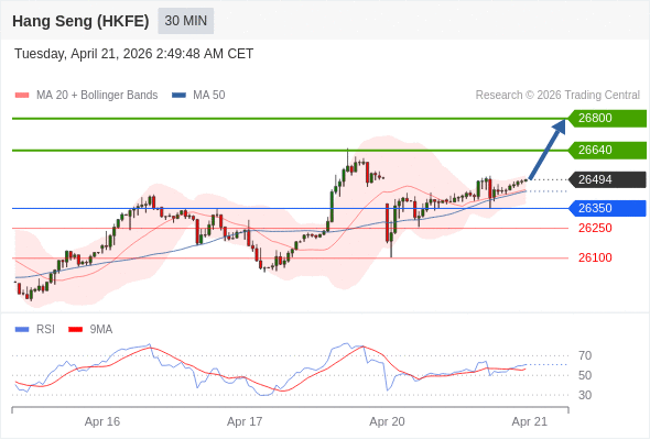 在 26350 之上,看涨,目标价位为 26640 ,然后为 26800 。