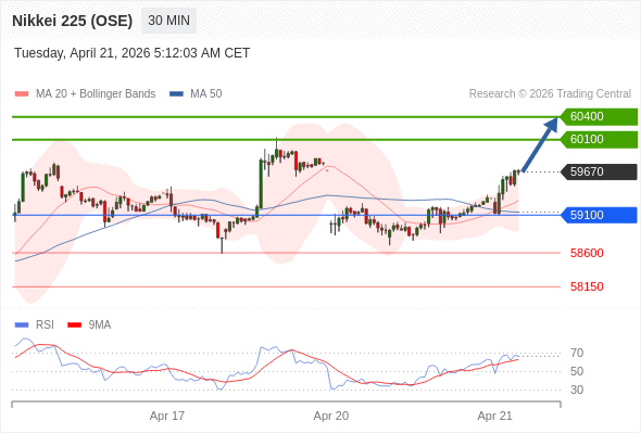在 59100 之上,看涨,目标价位为 60100 ,然后为 60400 。