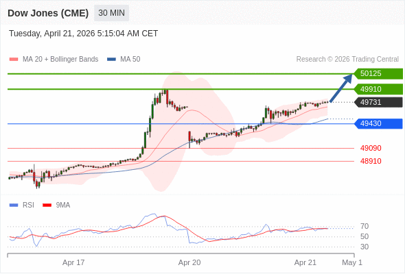 在 49430 之上,看涨,目标价位为 49910 ,然后为 50125 。