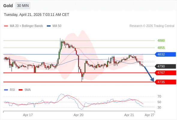 在 4832 之下,看跌,目标价位为 4767 ,然后为 4735 。