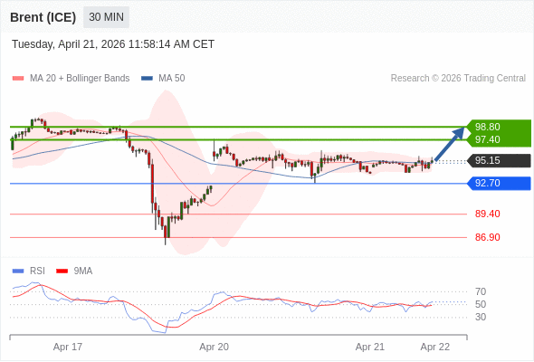 在 92.70 之上,看涨,目标价位为 97.40 ,然后为 98.80 。