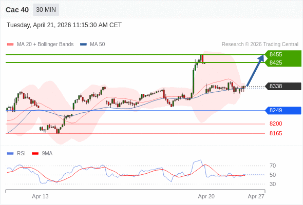 Cac 40 当日内: 没有明显变化趋势。