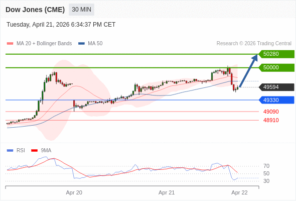 在 49430 之上,看涨,目标价位为 50000 ,然后为 50280 。