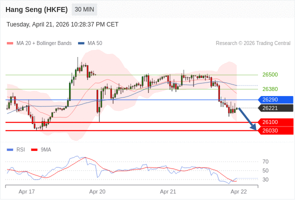 香港恒生指数期货 当日内: 短期关键阻力位在26290。