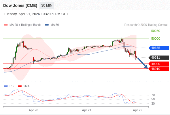 在 49665 之下,看跌,目标价位为 49090 ,然后为 48910 。