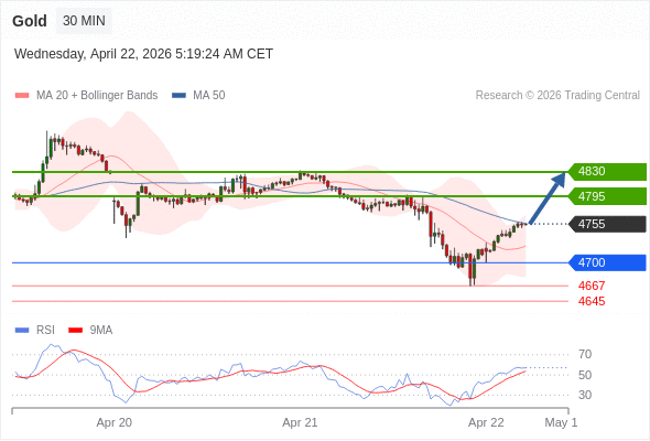 在 4700 之上,看涨,目标价位为 4795 ,然后为 4830 。