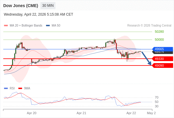 在 49665 之下,看跌,目标价位为 49330 ,然后为 49090 。