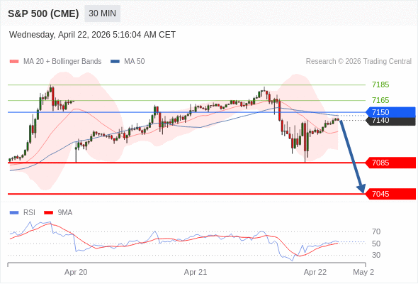 在 7150 之下,看跌,目标价位为 7085 ,然后为 7045 。