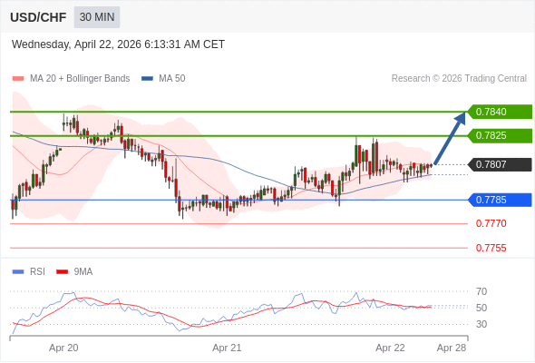 在 0.7785 之上,看涨,目标价位为 0.7825 ,然后为 0.7840 。