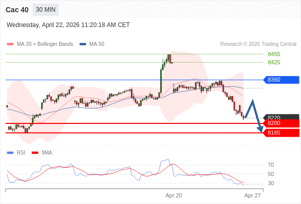 Cac 40 当日内: 存在压力。