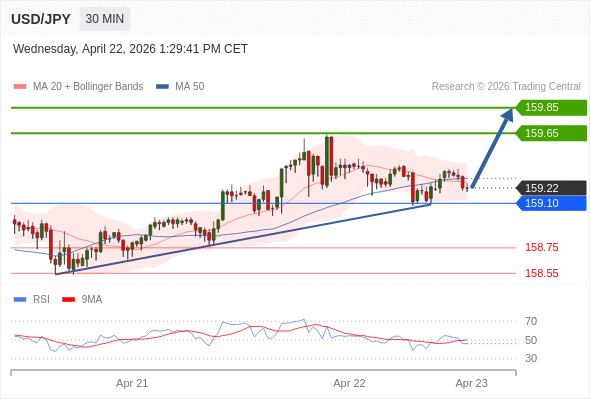 在 159.10 之上,看涨,目标价位为 159.65 ,然后为 159.85 。