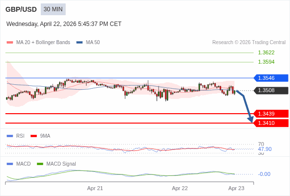 英镑/美元 当日内 : 看跌,在 1.3546 之下。