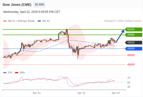 在 49500 之上,看涨,目标价位为 49860 ,然后为 50000 。