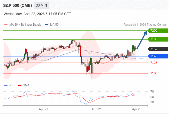 在 7140 之上,看涨,目标价位为 7180 ,然后为 7200 。