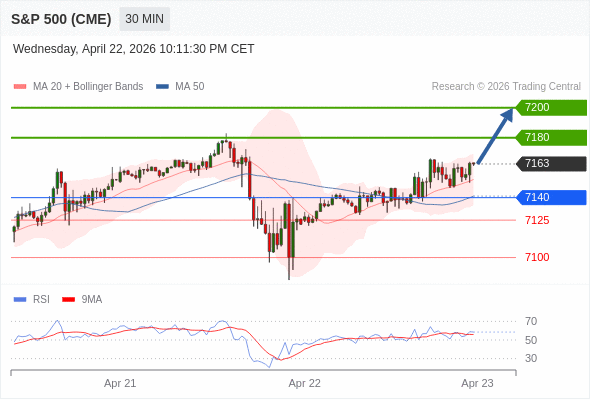 在 7140 之上,看涨,目标价位为 7180 ,然后为 7200 。