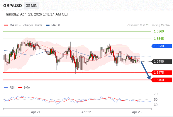 在 1.3530 之下,看跌,目标价位为 1.3475 ,然后为 1.3460 。