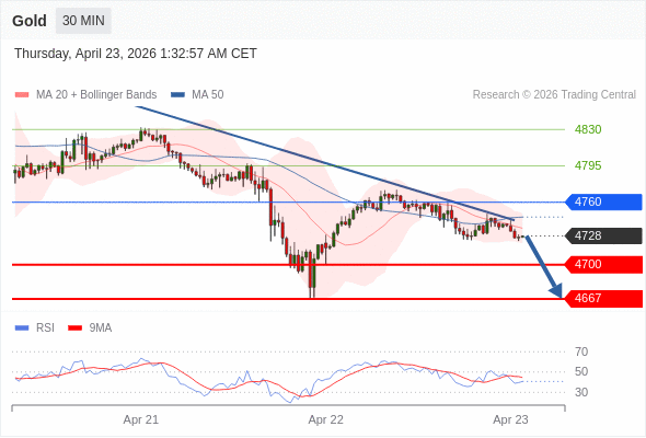 在 4760 之下,看跌,目标价位为 4700 ,然后为 4667 。