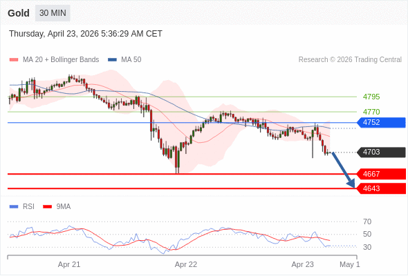 在 4752 之下,看跌,目标价位为 4667 ,然后为 4643 。