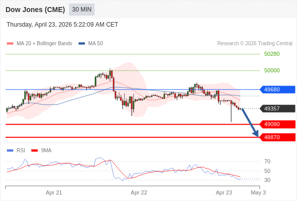 在 49680 之下,看跌,目标价位为 49090 ,然后为 48870 。