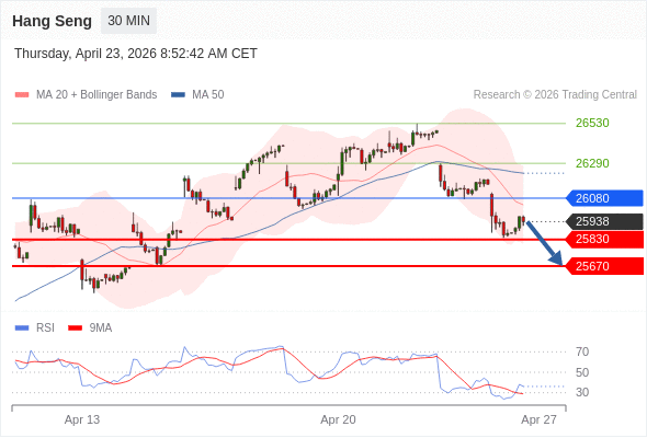 在 26080 之下,看跌,目标价位为 25830 ,然后为 25670 。