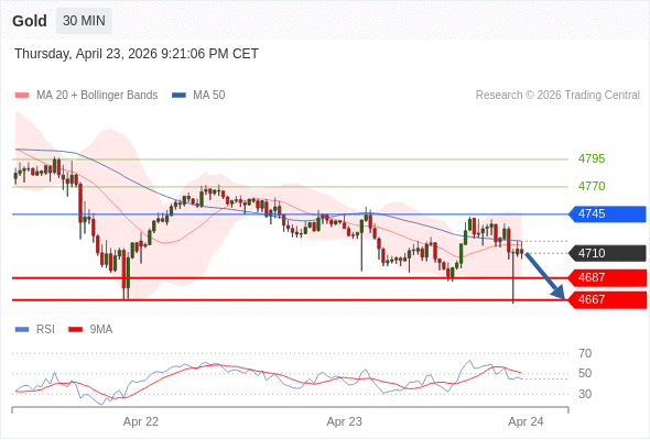 在 4745 之下,看跌,目标价位为 4687 ,然后为 4667 。