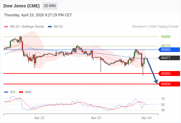 在 49680 之下,看跌,目标价位为 49090 ,然后为 48830 。
