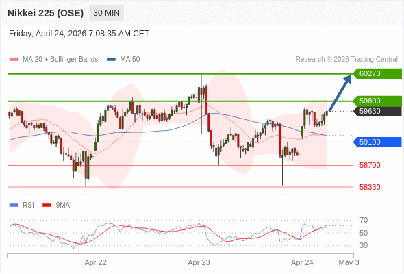 在 59100 之上,看涨,目标价位为 59800 ,然后为 60270 。