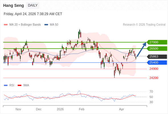在 25400 之上,看涨,目标价位为 26500 ,然后为 27000 。