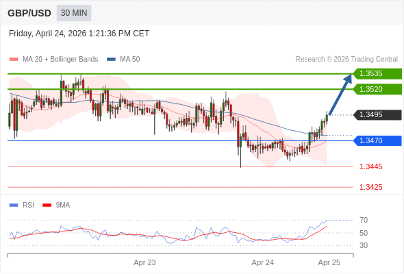 在 1.3470 之上,看涨,目标价位为 1.3520 ,然后为 1.3535 。