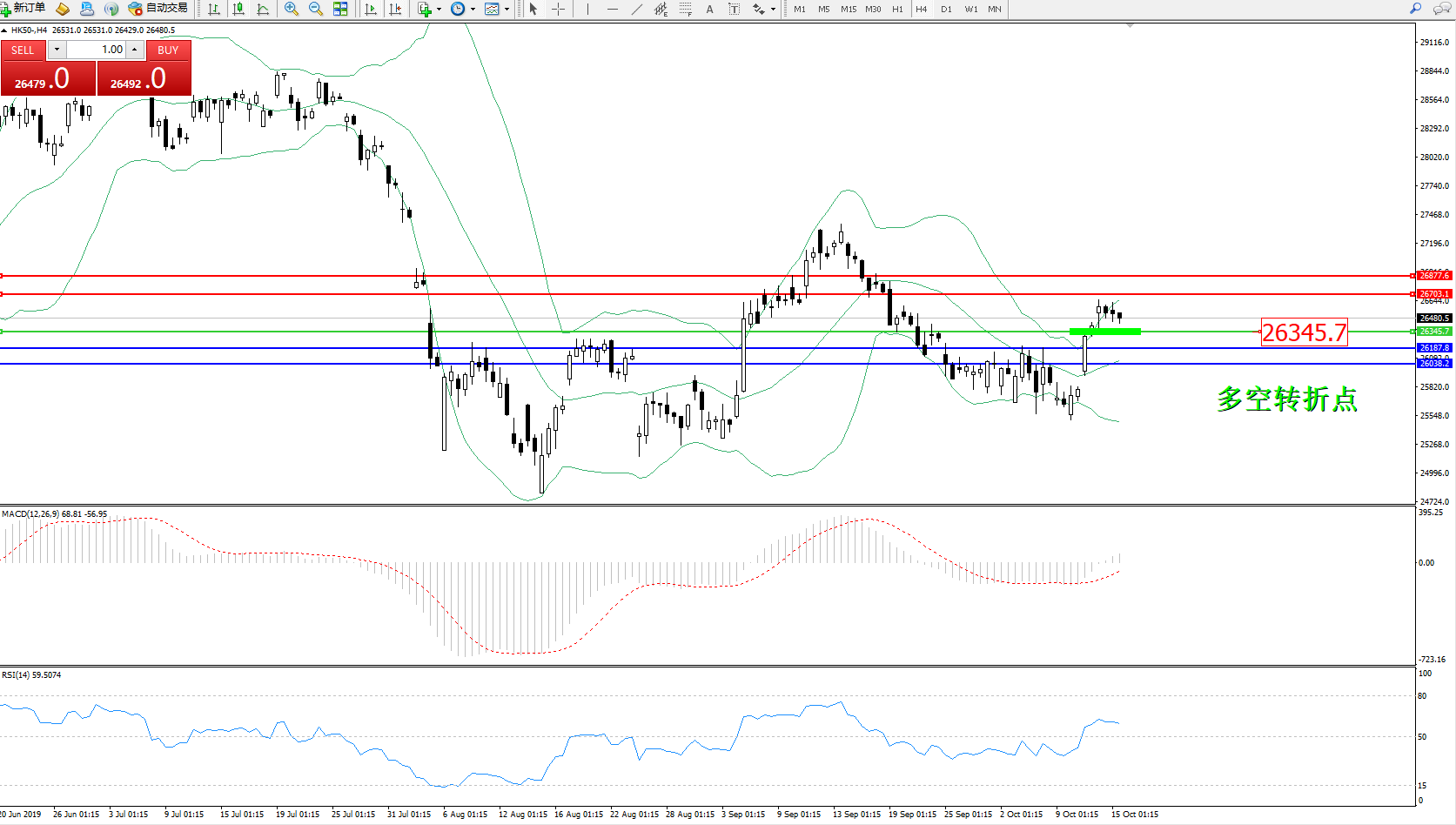 香港恒生指数10月15日(周二)收盘下跌17.92点,跌幅0.07%,报26503.93点;截至今日收盘,恒指大市成交额为756.82亿港元(上一交易日成交额为903.47亿港元)。港股早上高开87点,恒指高见26609,随后再逐步回落至倒跌,续在升跌附近横行。受益贸易关系以及中国政府多项利好政策提振下港股近期走势偏强。现外围市场大涨过后有整固需求也给恒指带来一定制约,好在十月份是三季度业绩公布密集阶段,有良好业绩支撑的企业有望给市场点燃做多动力。