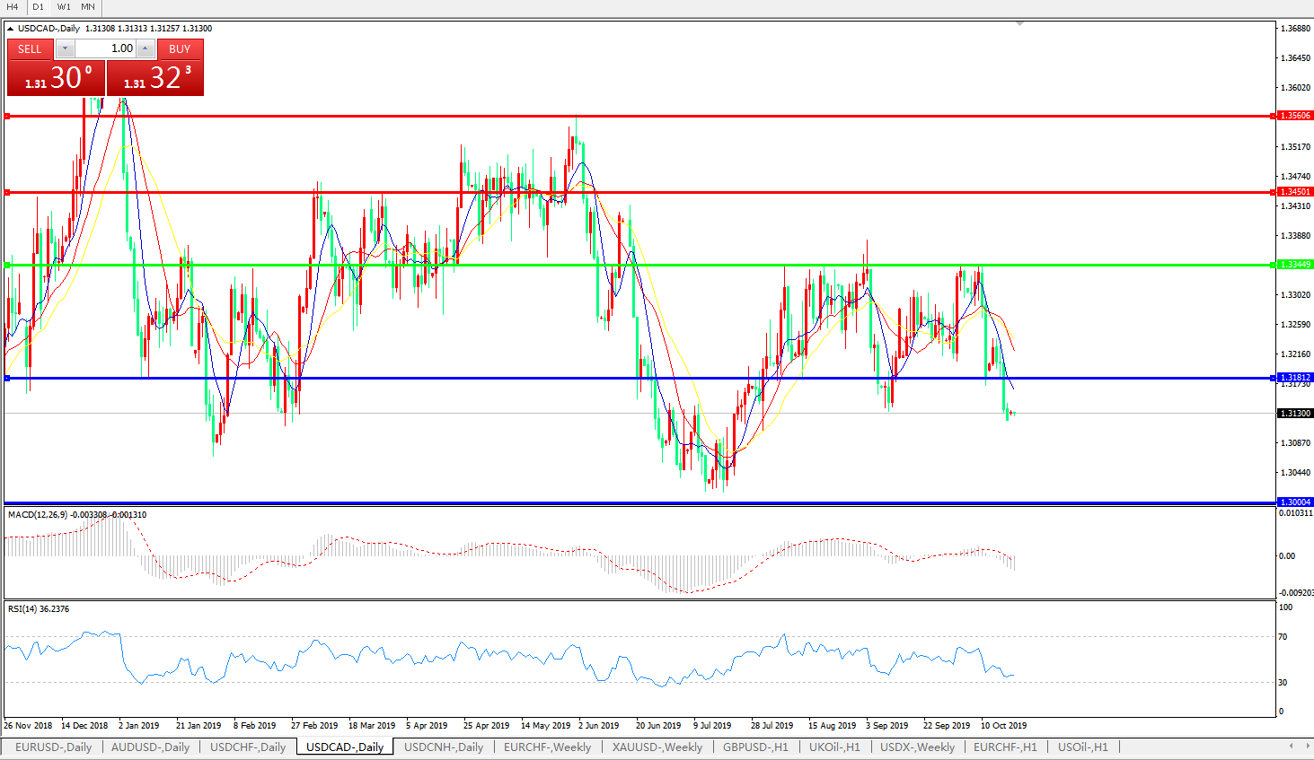 美元兑加元USDCAD    日线