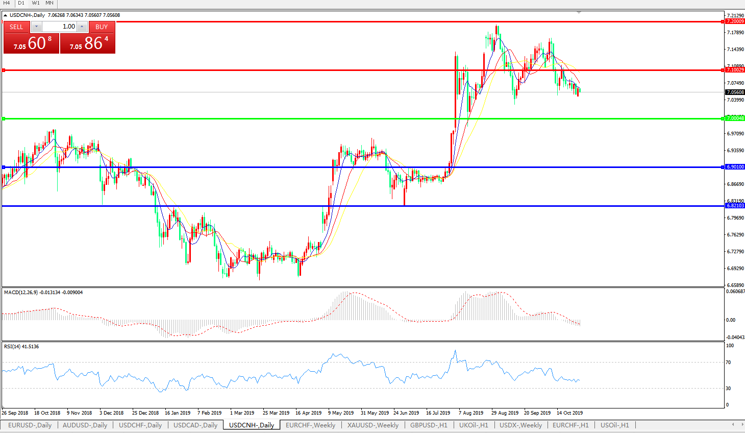 交易策略: 在7.0000之上,看涨,目标价位为7.1000,然后为7.2000。