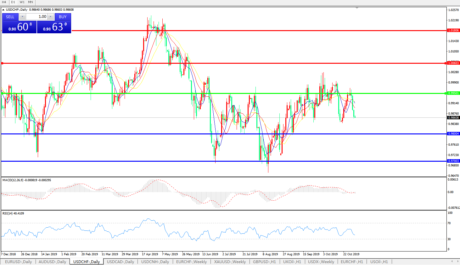 交易策略:0.9950下方看跌,目标0.9800、0.9700