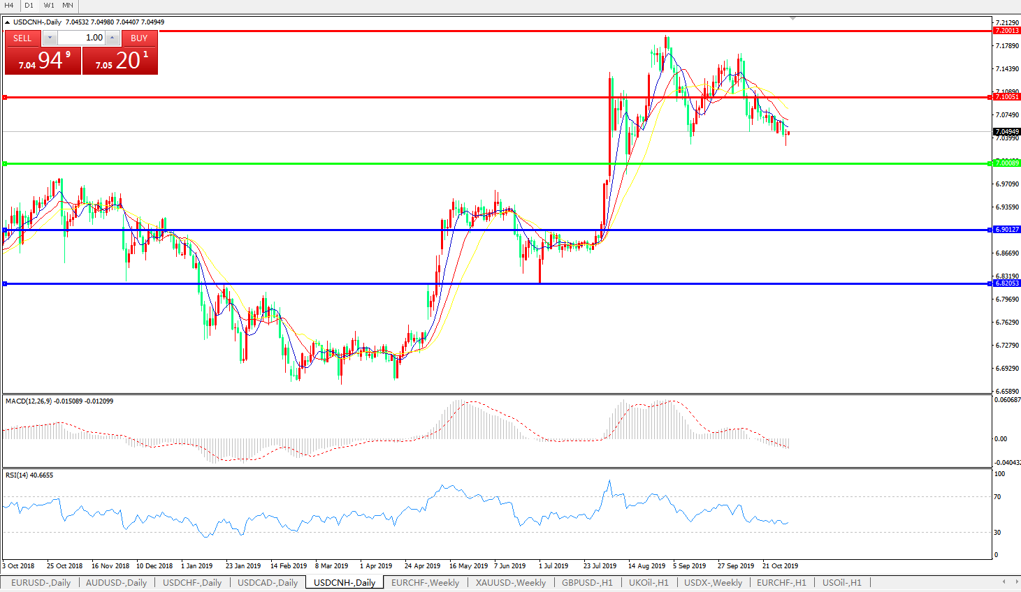 交易策略: 在7.0000之上,看涨,目标价位为7.1000,然后为7.2000。