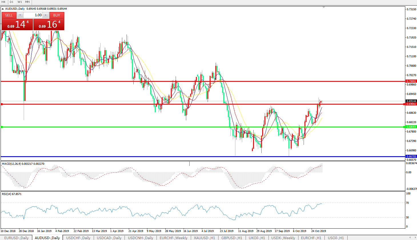 荷兰国际银行:澳洲联储下周的前瞻指引对市场影响更大;目前市场预计澳洲联储下周二降息的可能性仅为6%,因此(相比利率)该央行下周的前瞻指引对市场影响更大。我们的基本预期是澳洲联储在2019年底之前都不会降息,澳洲联储主席洛威可能会暗示暂停降息步伐,并可能展现出谨慎,表示对进一步降息持开放态度。澳洲联储偏鹰派的表述或将令澳元兑美元面临上行风险,波动范围料在0.6850-0.7000之间,不过200日均线0.6955处将是强劲阻力位。