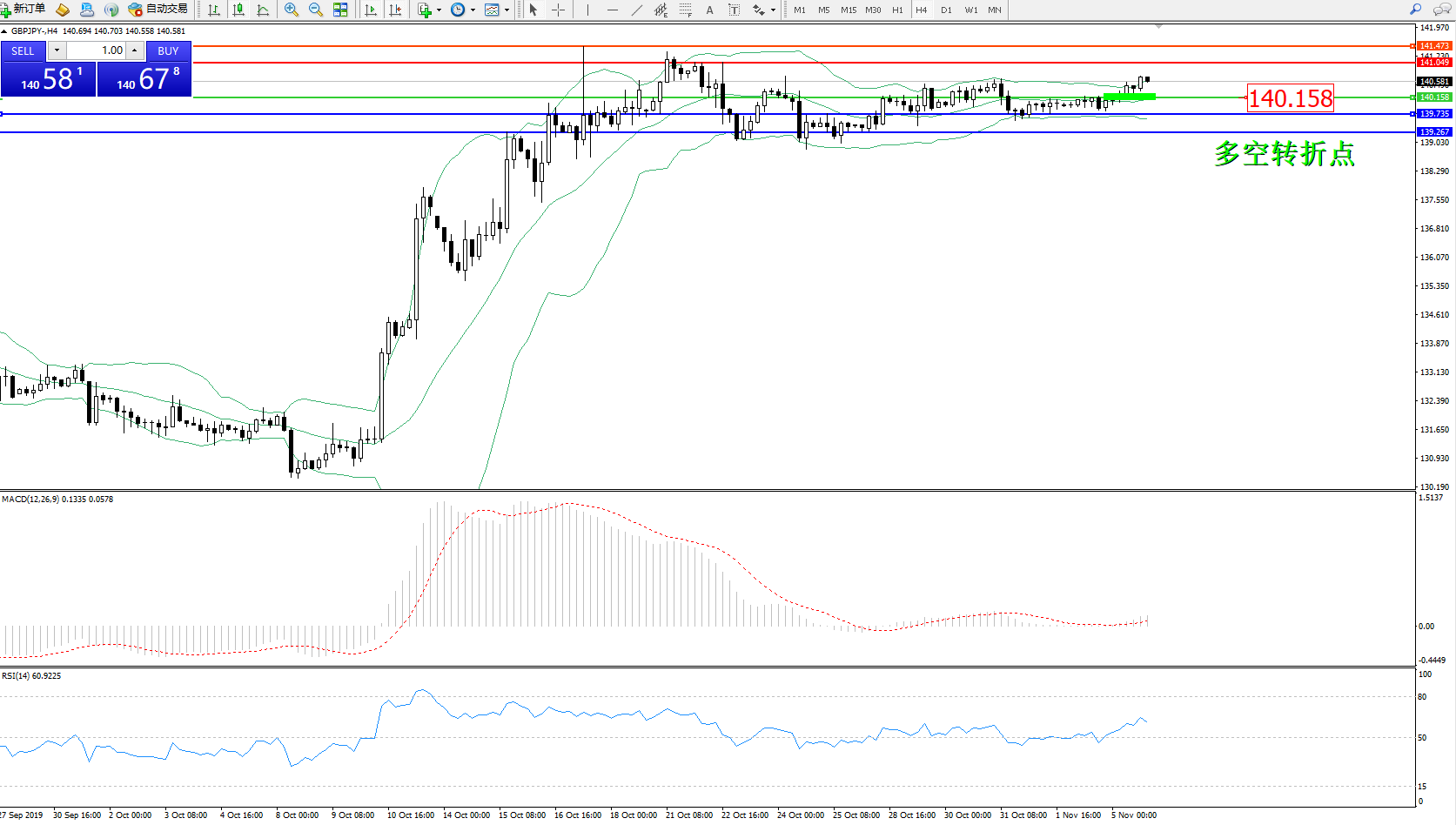 交易策略:140.158上方看涨,目标141.049141.473