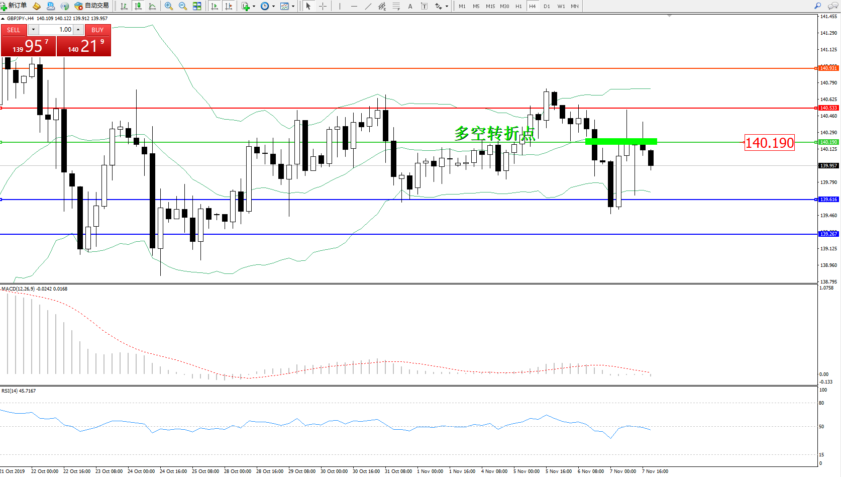 备选策略:140.190上方看涨,目标140.533、140.931
