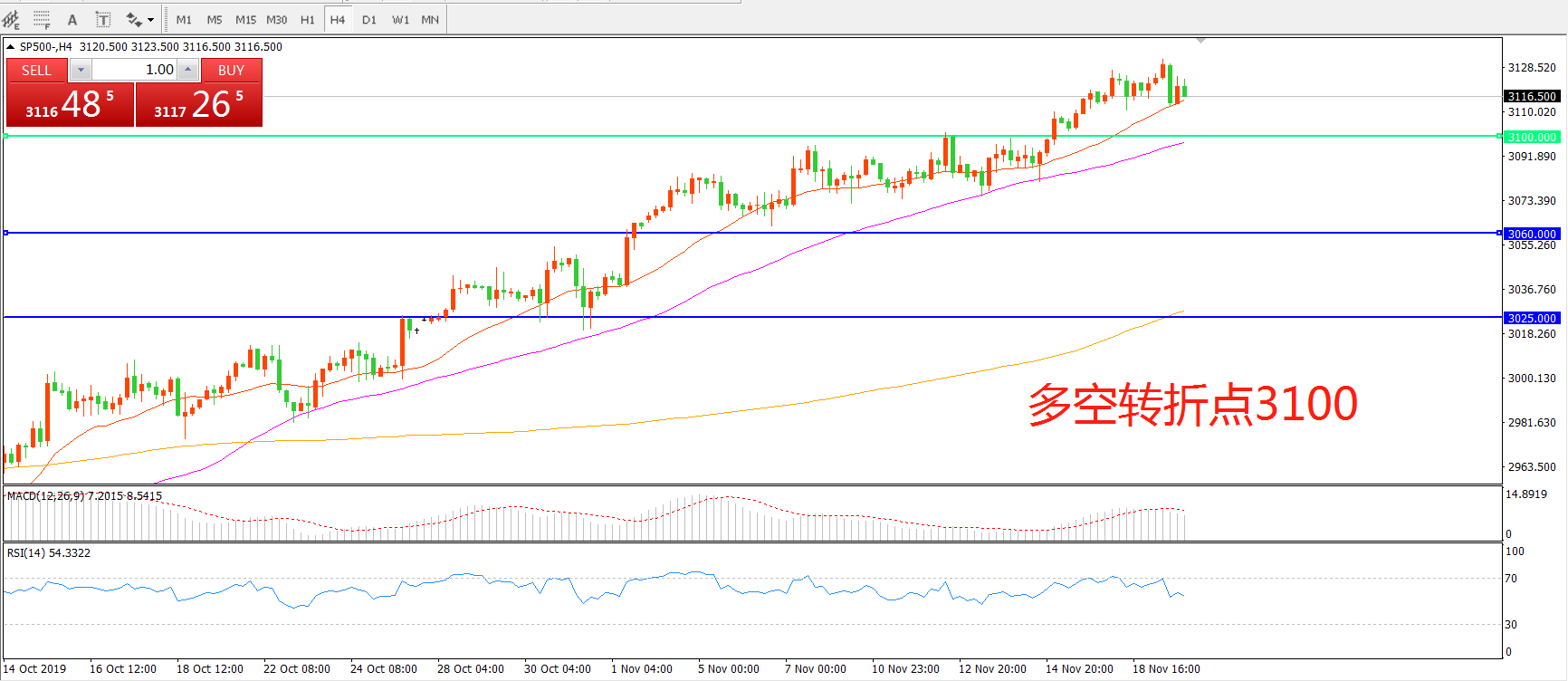 多空转折点:3100.00