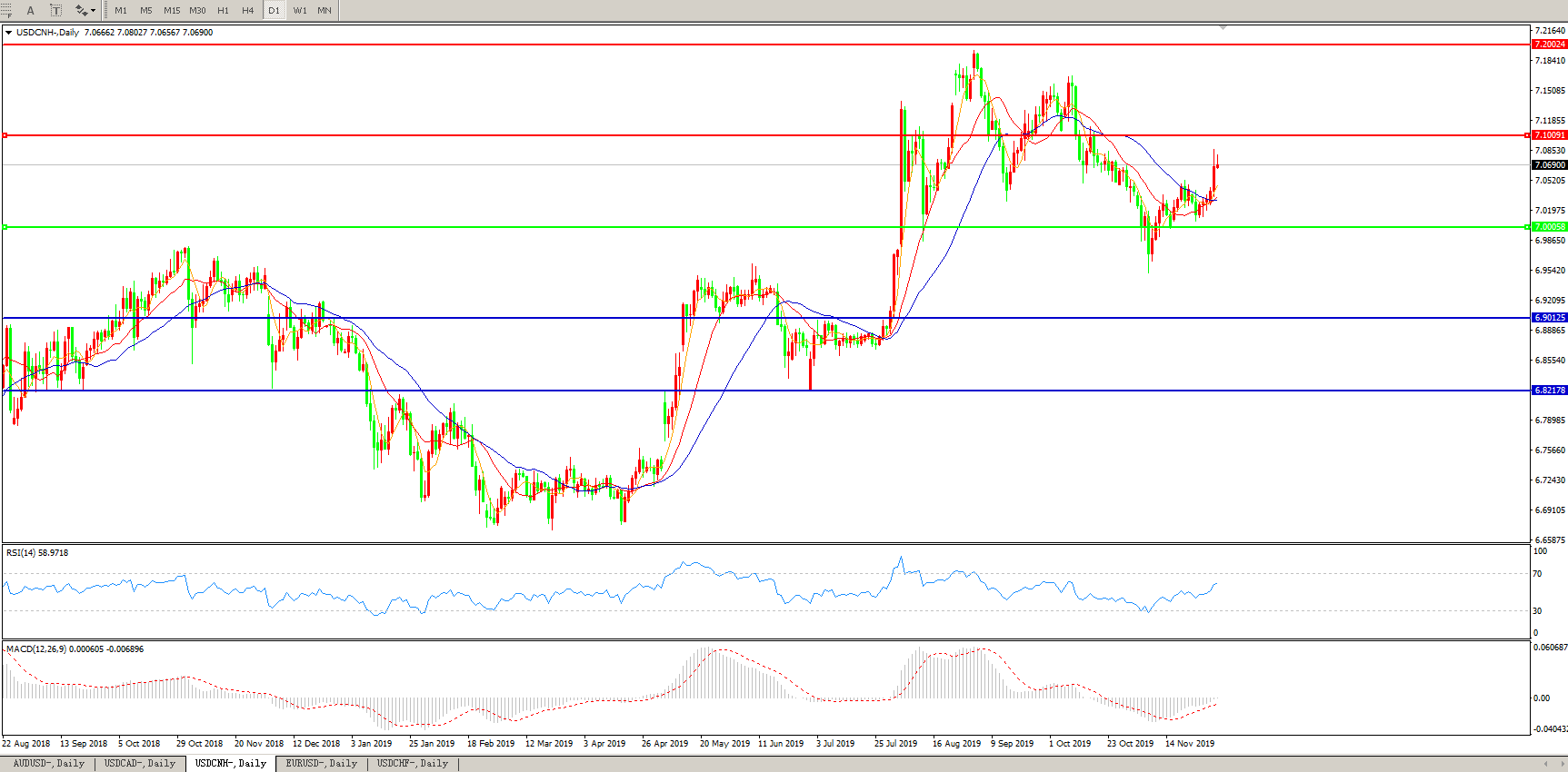 交易策略: 在7.0000之上,看涨,目标价位为7.1000,然后为7.2000。