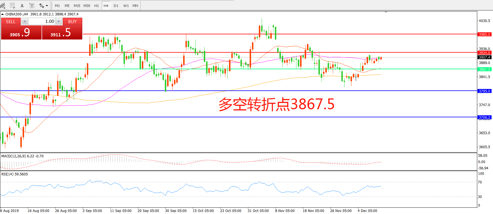 多空转折点:3867.50
